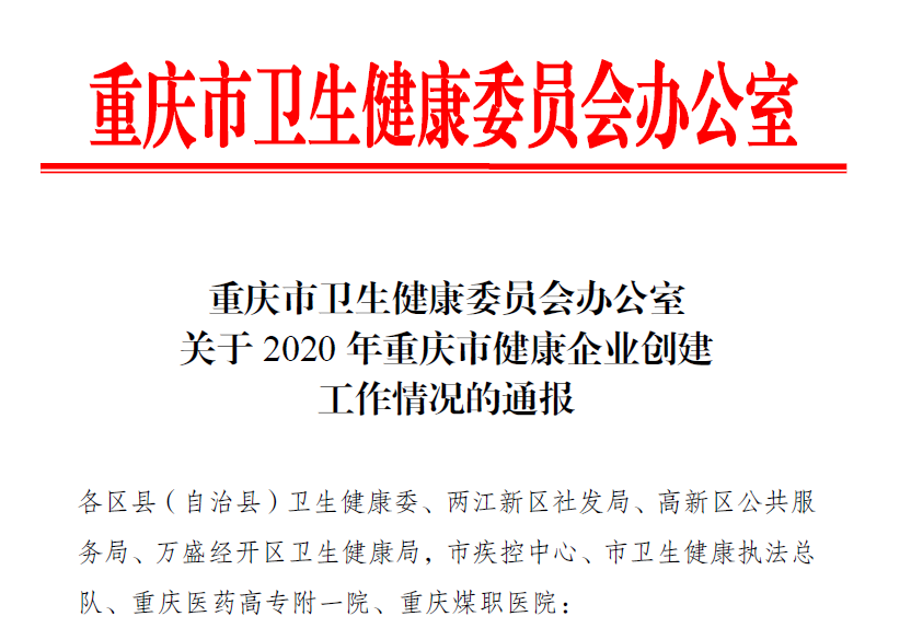 近日,重慶市衛生健康委員會通報了2020年全市健康企業創建工作的情況,公布了2020重慶市健康企業名單。經區縣評估、市健康企業創建領導小組辦公室審核,江津區有3家企業上榜,賽迪裝備名列其中,這意味著公司創建健康企業工作取得了圓滿成功。健康企業的成功創建,是公司堅持以人為本、落實職業病防治主體責任的具體表現。