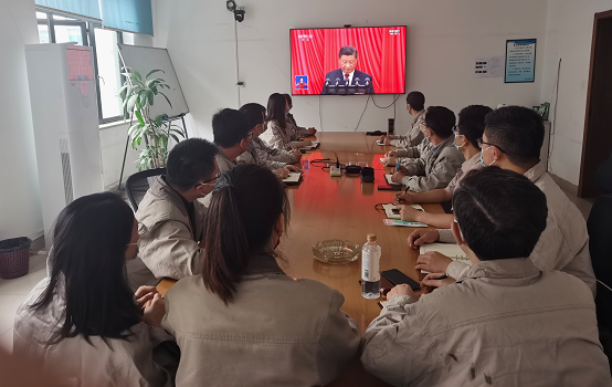 按照疫情防控要求,裝備公司以集中收看和自行收看的方式組織收看。在黃花園605會議室,大家圍坐在一起,共同見證這一歷史時刻,感受團結、奮進的時代脈動。